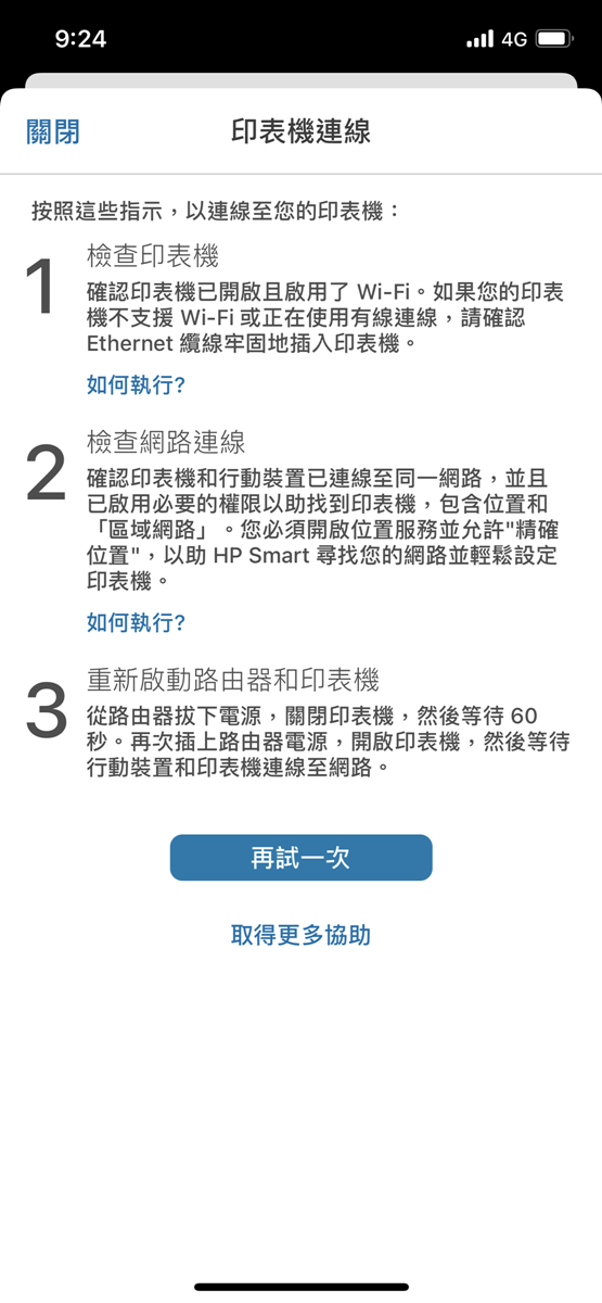 印表機必須要跟手機處在同一個WIFI環境中才能正確連線,遠端是無法連線的。