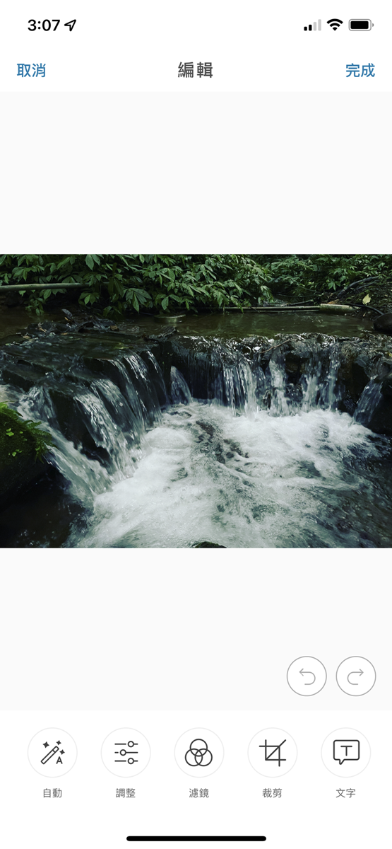 在列印之前可以對檔案作一些編輯。有自動調整、手動調整、濾鏡、裁剪、加上文字等。