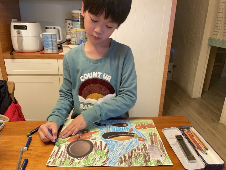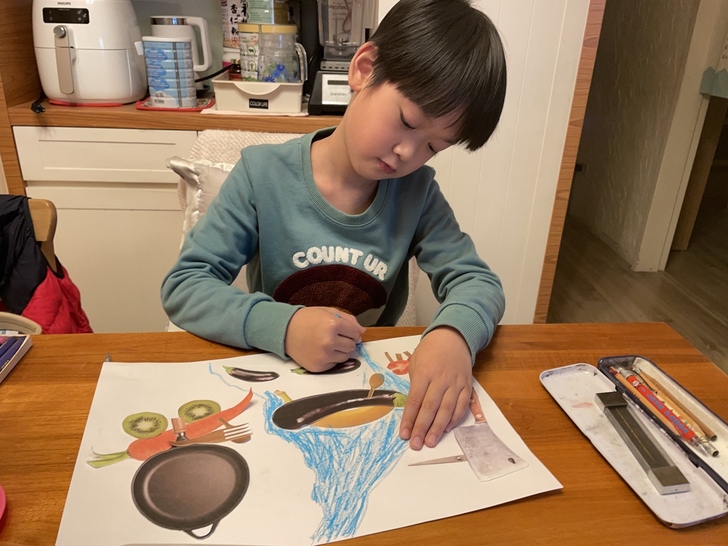 我家喵寶在看過五個課程之後,最後選擇了「廚房總動員」這個課程來創作。