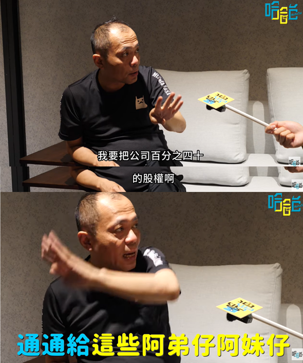 昨(30日)該名網友在Dcard發文表示,哈哈台最新影片街訪了一位沙發公司老闆,提到「百分之四十的股權分給員工耶」,不僅如此,甚至還說是希望員工可以領兩份薪水,所以不禁讓原PO好奇想問「市面上真的有老闆那麼大方的嗎」