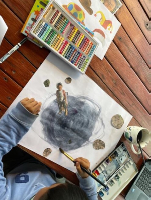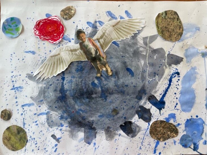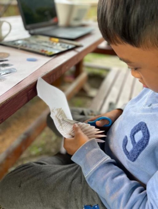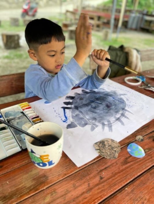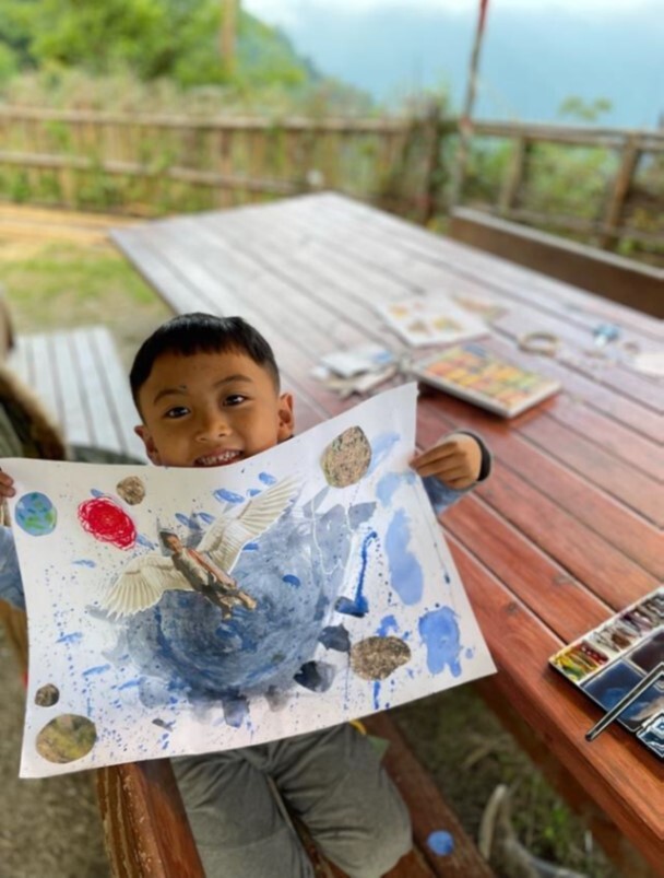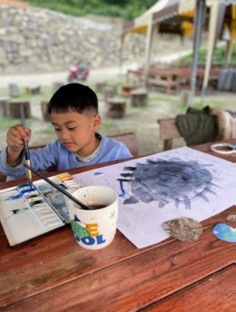 >這次提供的美術課程很輕鬆有趣,剛開始看課程影片時覺得好像是很普通的課程,但孩子實際創作後才發現這位老師很會設計課程,透過簡單的操作:剪貼圖片、揮灑水彩顏料,就能讓孩子有很大的發揮空間,而且最後作品的視覺效果很好👍