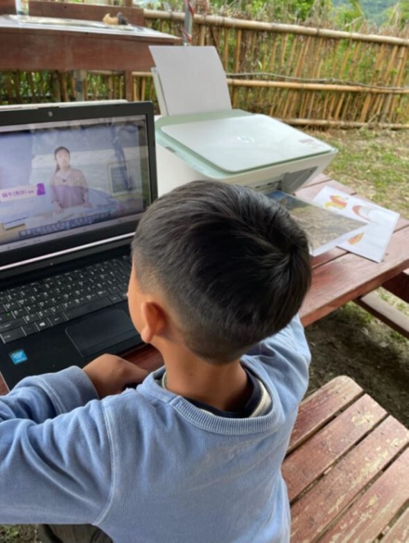 >撒紹很認真的看著電腦上課,這也是他人生第一次用筆電。