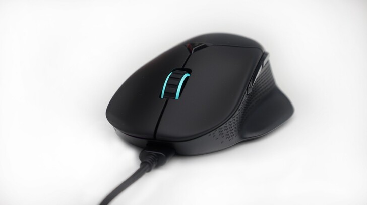 左右鍵裝配 OMRON 微動開關,提供高達 6000 萬次的點擊使用壽命。且下方配有一圈 RGB 燈效,個人覺得此處若影若現的燈光設計最好看。