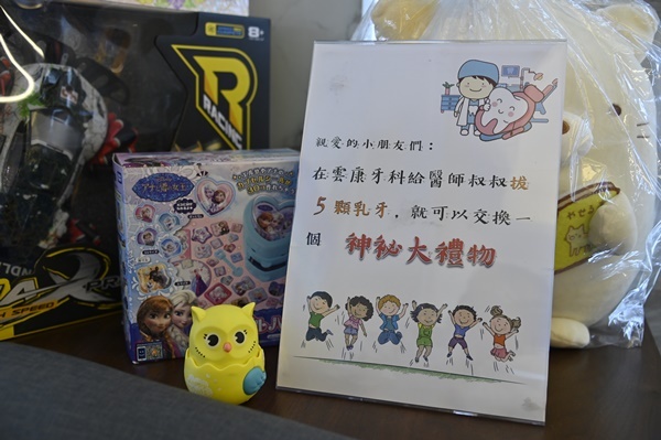 台中南屯雲康牙醫剛從門口進入,大廳充滿溫暖黃色燈光,有電視可以看,等待看診並不會太無聊!而且會看到有很多玩具擺在旁邊,據護士小姊姊說,那些是他們用來獎勵小朋友拔乳牙的,為了小孩口腔健康,能做到這個地步真的是非常用心欸!