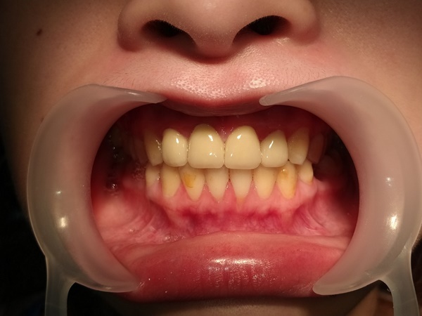 記得那時候醫師有臨時先用樹脂幫我補上去斷裂,然後幫忙預約一天要做假牙,可是在我當天回家的時候,連裡面僅存牙根包含外面新黏的地方全部完整掉下來了…真的差點崩潰,不知道那個同學竟然砸的那麼大力。