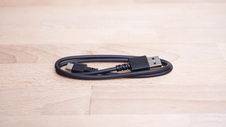 裡面附贈一條 HyperX 信仰 USB-C 充電線,實際測量長度最長部分為 58 公分。如果你真的吃雞吃到一半耳機沒電了,建議還是拿自己 1~2 公尺的手機充電線來邊充邊使用,活動起來會比較自由一些。不過它號稱有 300 小時續航,你實際用到充電線的機會也不會很多啦!我自己使用下來是真的有被驚艷到,每天下班大約都使用個幾十分鐘,從開封後初次開機 80% 電量,用了幾天後還是 80%,實在有點離譜。