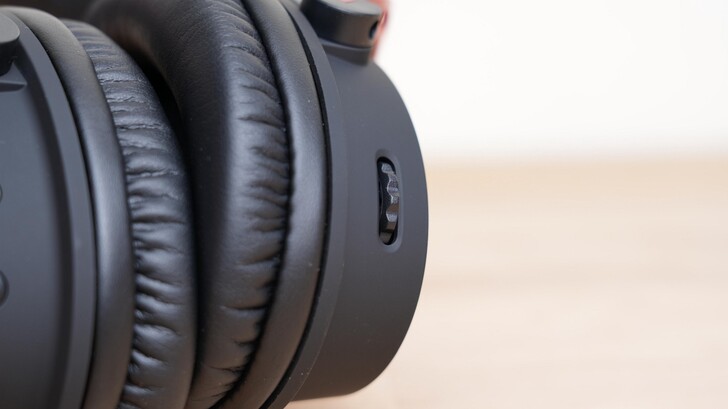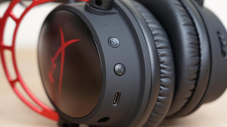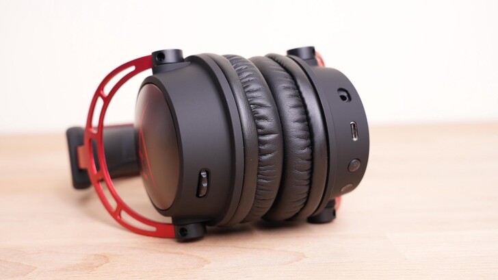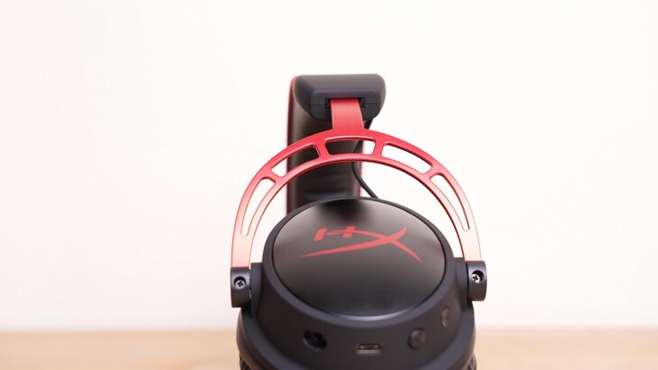 兩側耳機上方都有兩個水滴狀的調音孔,也就是低音喇叭上的倒相孔的功能。主要目的是讓單體在低頻震動時,能將低頻的聲波釋放。HyperX Cloud Alpha Wireless 做得滿顯眼的,各位可別以為這是主動降噪的收音區呀!