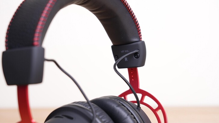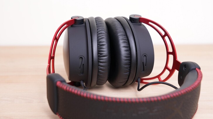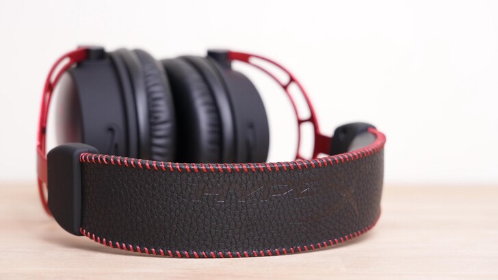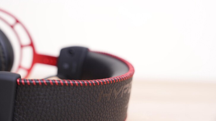 頭帶頂部為仿皮革材質,中間燙有 HyperX 字樣,兩邊為紅色縫線收邊,整體造型真的非常好看。