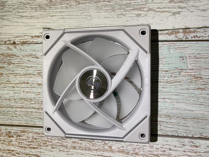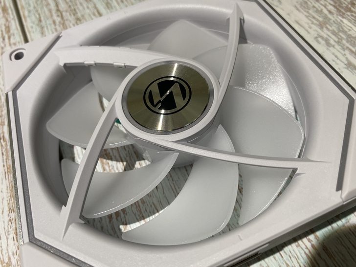 ▼近距離觀看風扇本體,可看到風扇整體外型作工相當精緻,風扇由7片扇葉構成。