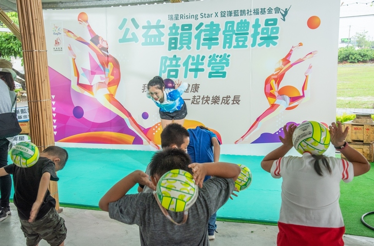 由瑞莎所創辦的『瑞星韻律體操協會』與『錠嵂藍鵲社福基金會』第二年來到台南柳營地區,日前7月16日(六)當天於農農聚場舉辦「公益韻律體操陪伴營」,一起陪伴偏鄉孩童,體驗韻律體操之美。