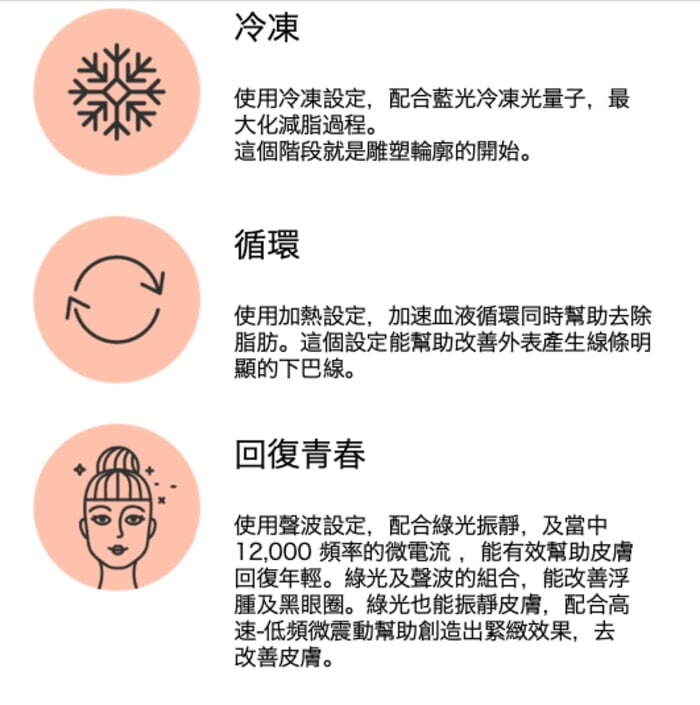 買咗翻嚟梗係事不宜遲,真係想見下面尖尖同冇咗個雙下巴嘅自己!佢係有3個模式嘅,第一種係藍光冷凍,可以到達皮膚最底層,從而令脂肪細胞縮細。第二種係紅光加熱,佢可以針對皮膚皺紋,幫助到血液循環。第三種係綠光鎮靜,可以鎮靜皮膚表面,令皮膚重拾年輕。咁我就梗係試咗佢個藍光模式先,因為我最想就係整走個雙下巴,用佢嗰陣係冰涼冰涼咁,而家夏天咁鬼熱,用佢真係特別舒服,而且用嘅過程係完全唔痛的!😆而家坊間嘅瘦面過程通常都係要打針或者做手術,我就驚驚啦但呢個Fat Freezer Face 家用冷凍溶脂機 就免除咗我個憂慮!咁佢冇痛、冇手術同冇打針嘅情況底下係咪真係有用呢?