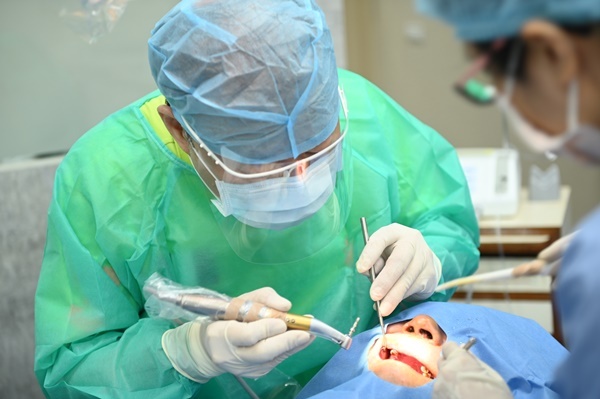 過程中植牙專科朱醫師先看過阿公口腔狀況,