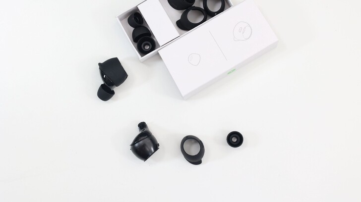耳翼為矽膠材質,手感相當不錯,更換也滿方便的,能視自己耳型需求更換不同耳翼。預設的耳翼我覺得就是最好戴的,也的確因為有了耳翼更能固定住耳機避免掉落。如果是不喜歡耳翼的使用者,其三套中其中一組便為無耳翼的設計。