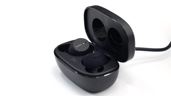 Immerse 藍牙耳機盒採用 USB-C 充電,對於目前 USB-C 非常通用的時代是個很好的設計。右側按鈕是用來使用「Find My」功能以及恢復原廠設定。搭配 Belkin 自家開發 App,可隨時追蹤自己的耳機。