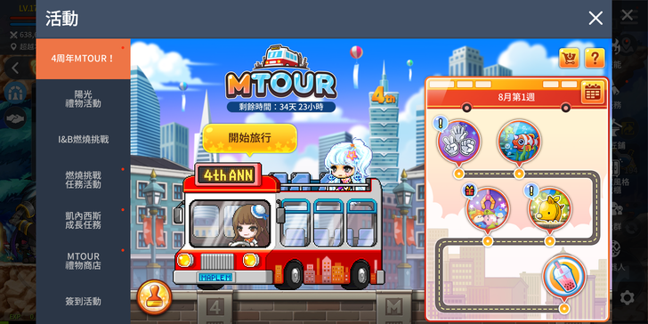 邁入第4年的楓之谷M今年也是盛大的迎接周年慶,四周年的MTOUR跟著休菲凱拉一起到不同市區各個角落旅行吧