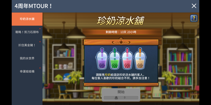 第五站”珍奶涼水舖”體驗當店員的樂趣,很簡單的點餐送菜小遊戲,如果不小心送錯了還可以離開遊戲再重新進入,參加的票券是打星圖或是迷你副本都有