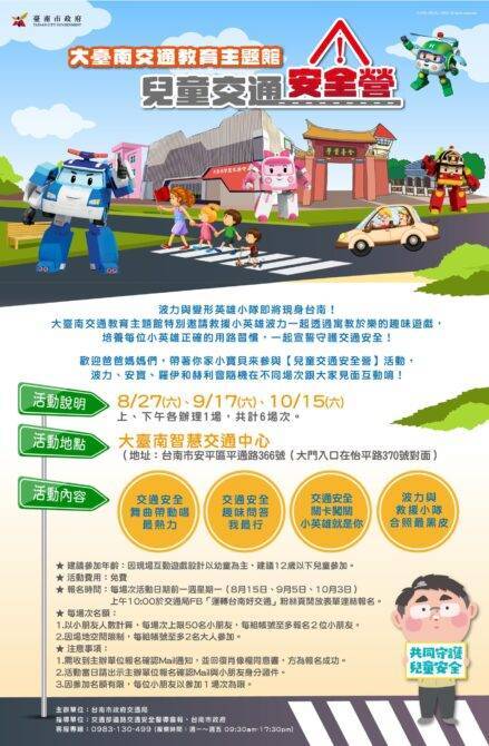 臺南市長黃偉哲8月1日宣布,將在臺南交通教育主題中心舉辦「大臺南交通教育主題館兒童交通安全營」,邀請孩童們加入超夯卡通片《救援小英雄波力》的遊戲玩闖關。在遊戲中去培養孩童能遵守安全的用路習慣、保護交通安全,誠摯邀請家長陪同一起來參觀交通教育主題館,共同拍照享受親子樂趣。 黃偉哲表示,隨著疫情趨緩,臺南又是臺灣熱門的旅遊聖地,人潮與車潮雨後春筍的情況下,加強民眾的交通安全意識和提升用路品質相當重要。市府將藉由這次「大臺南交通教育主題館兒童交通安全營」積極推廣兒童交通安全教育,加深孩子們對交通安全的認識,從小就能培養正確的交通安全觀念。