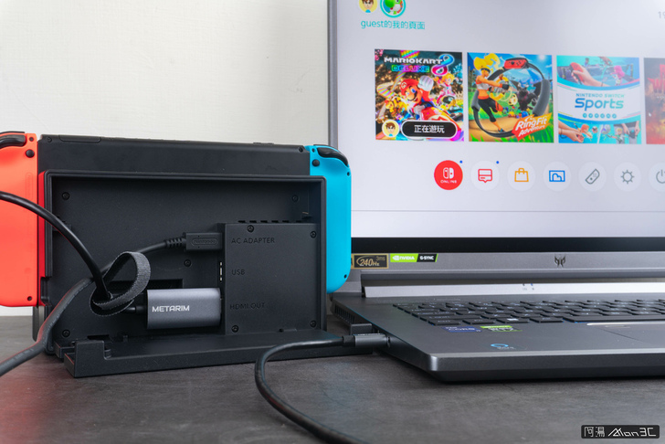 Switch 雖說有著極佳的攜帶性,但對於一些需要大螢幕,或是多人遊玩的遊戲,這攜帶性就成了一場災難。雖說 Dock 太大的問題可透過副廠 dock 解決,但另一個問題在於並不是任何時候都有一個空閒的螢幕可以讓我們連接。怎麼辦?METARIM 提出了用影像擷取線來讓筆電或是電腦,瞬間變身成 Nintendo Switch 的螢幕。