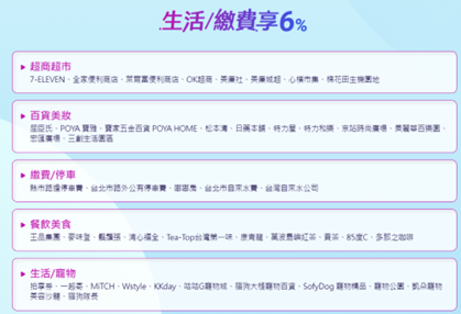但這張像是縣市路邊停車費、台北市路外公有停車費、嘟嘟房、台北市自來水費、台灣自來水公司也都有最高6%回饋
