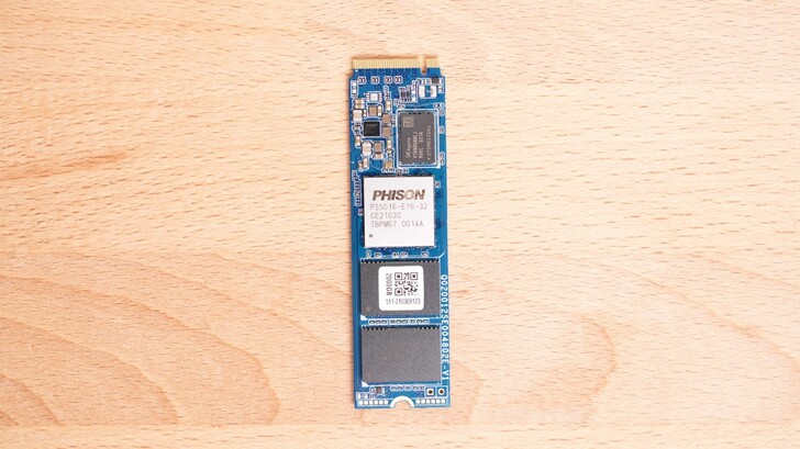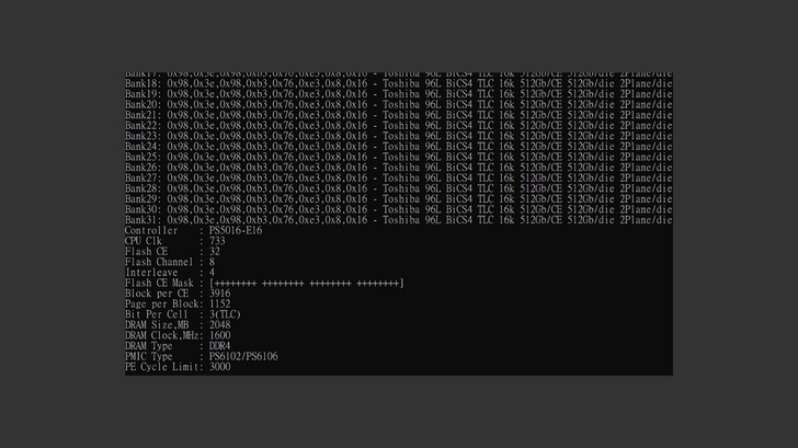 把散熱片拿掉之後可以看到 PHISON 的主控,型號為 PS5016-E16。海力士的 RAM 為 DDR4 容量 1GB。Toshiba 的儲存顆粒型號則是 TABHG65AWV,三個的選料在這個價位和定位來說,都是穩定可靠的一時之選。