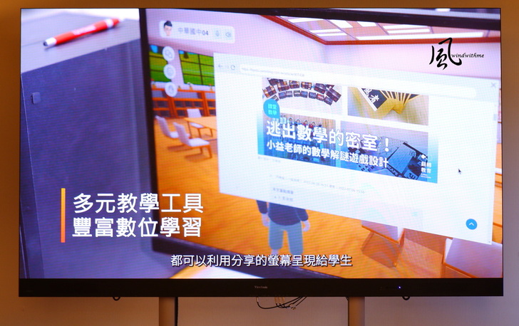 透過螢幕分享功能,能把電子書、簡報、網頁內容在課堂上直接呈現。運用測驗小考功能,可即時檢核學生的學習狀態。」