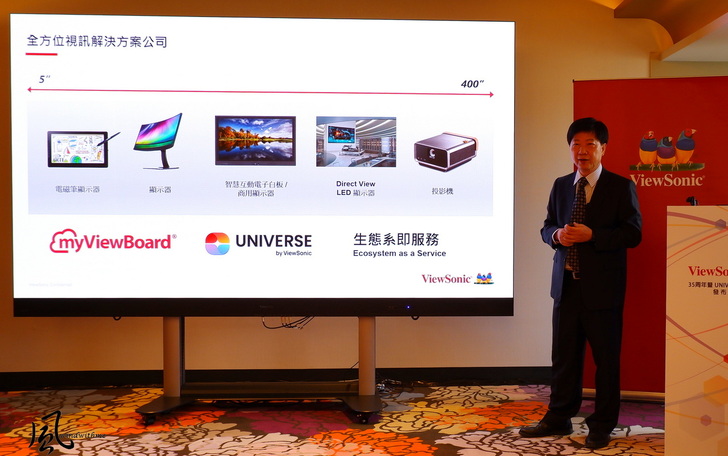 ViewSonic創立至今35年,從顯示器起家而後進軍投影機市場、推出互動式白板,現在推動數位轉型以EaaS為概念,現場有UNIVERSE體驗區搭配自家新品產品線做展示。