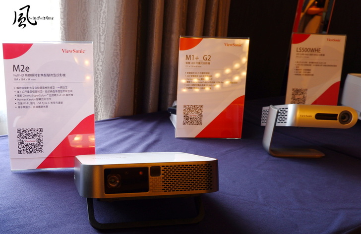 最後有一整區各種定位的投影機展示區,有輕巧好攜帶適合學生或套房族群的M1+_G2與M2e。