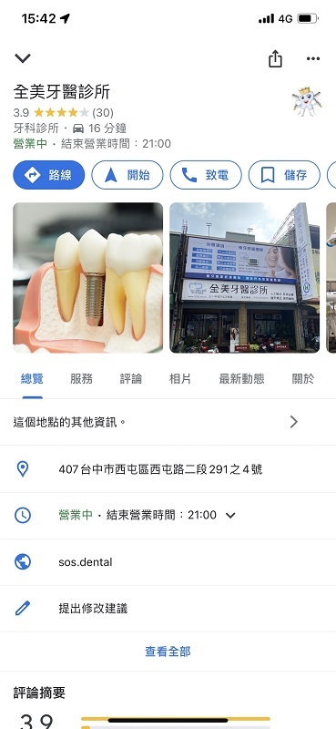 第二家則是替自己做微創植牙的台中西屯全美牙科診所