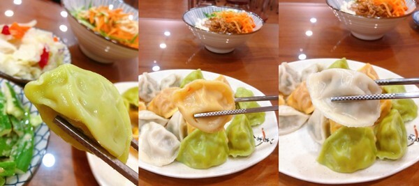 每一顆都飽滿紮實,肉塊和蔬菜讓水餃的肉汁好鮮甜啊~