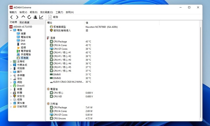 ▼房間環境26度 : Intel i5 12400運作頻率4.4GHZ (0.688V,)使用INTEL原廠風扇,CPU溫度運行約在45度 。