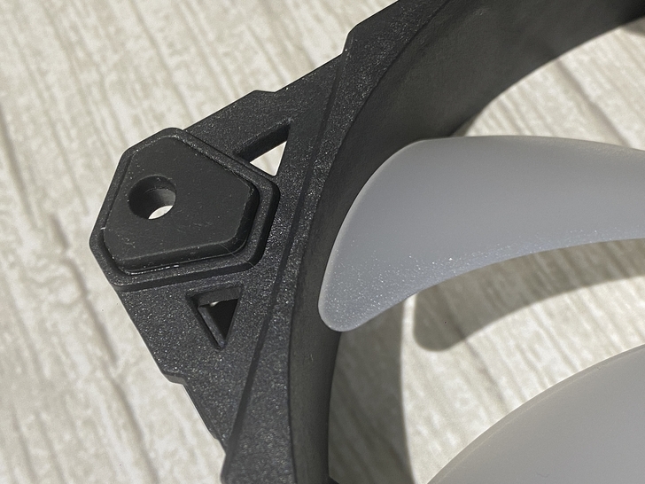 ▼風扇的四個邊角預先配置2mm抗震襯墊,可將風扇在工作運作中的噪音和振動減至最低。