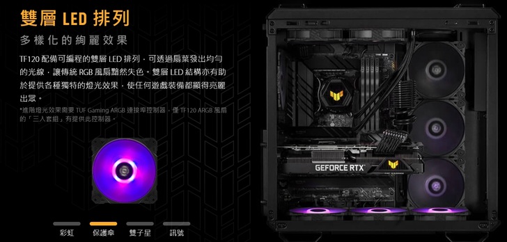 TUF GAMING TF 120 ARGB風扇 : 3組