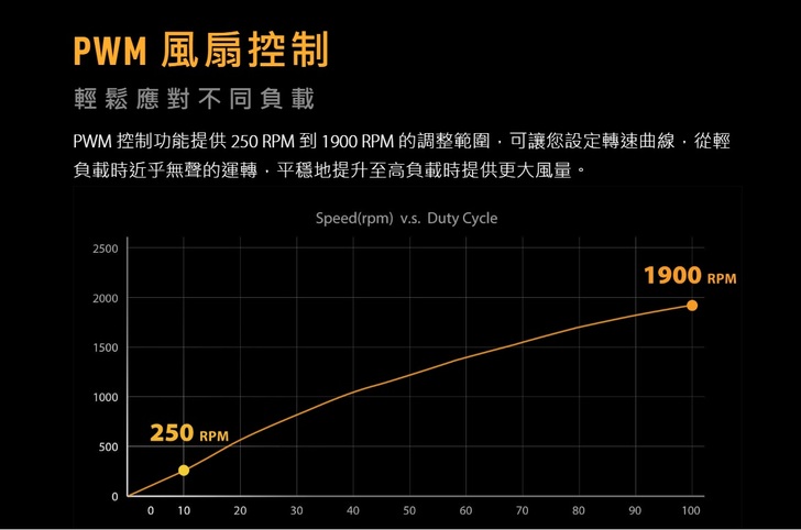 ▼並且內建PWM風扇控制 : 提供了250-1900RPM幾段轉速調整。