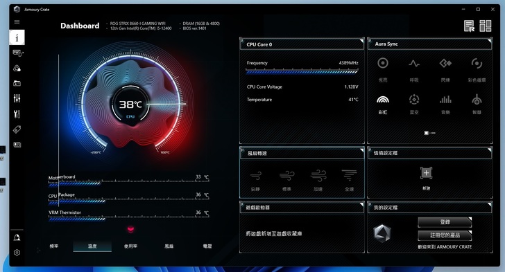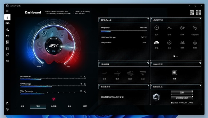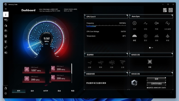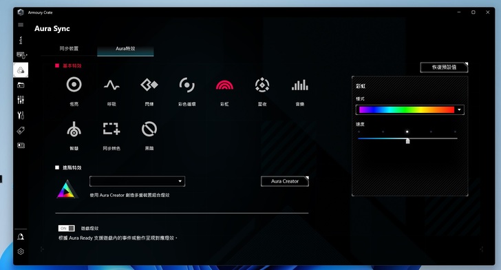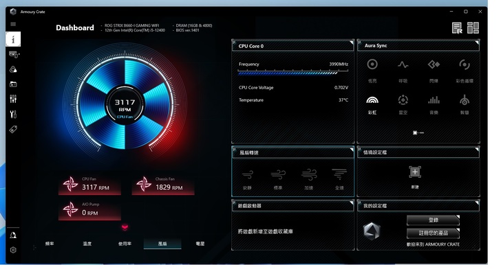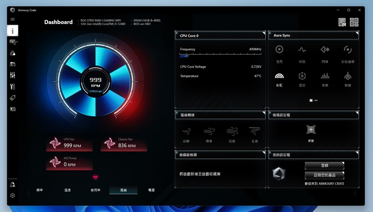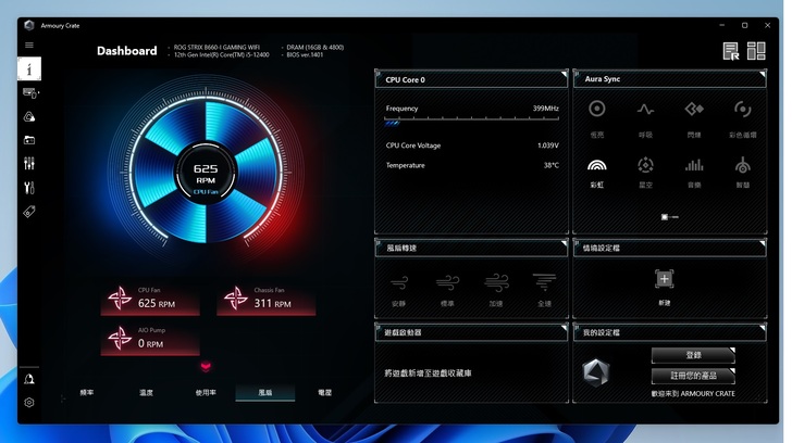 ▼因為使用ROG STRIX B660-I GAMING WIFI ITX這塊板,剛好可以搭配ASUS自家的Armoury Crate程式來控制燈效。
