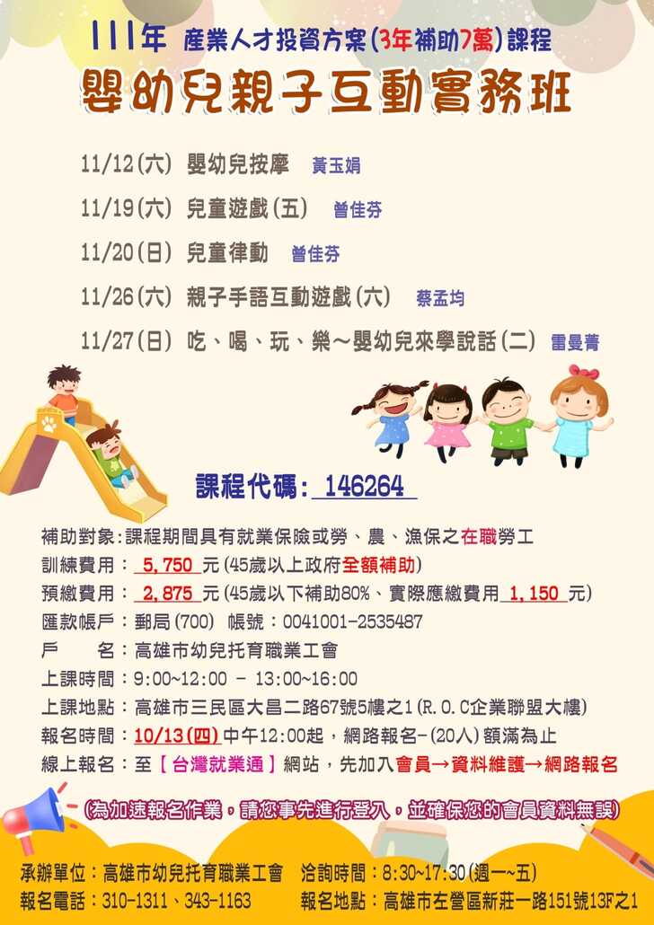 了解嬰幼兒按摩、兒童遊戲及互動...等等有趣課程,