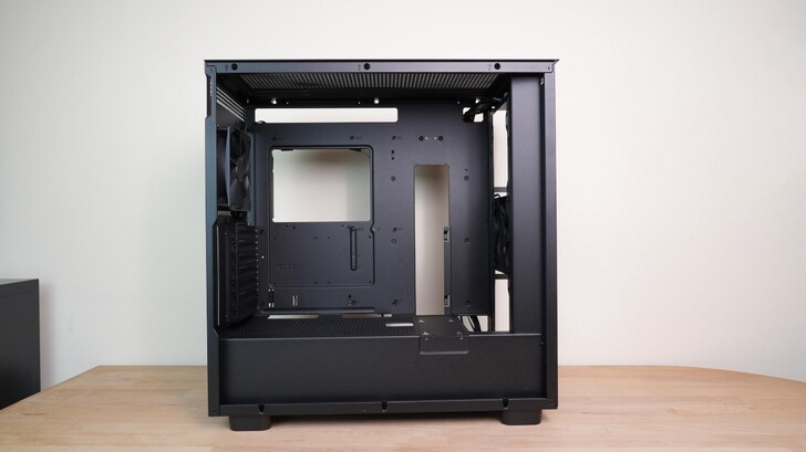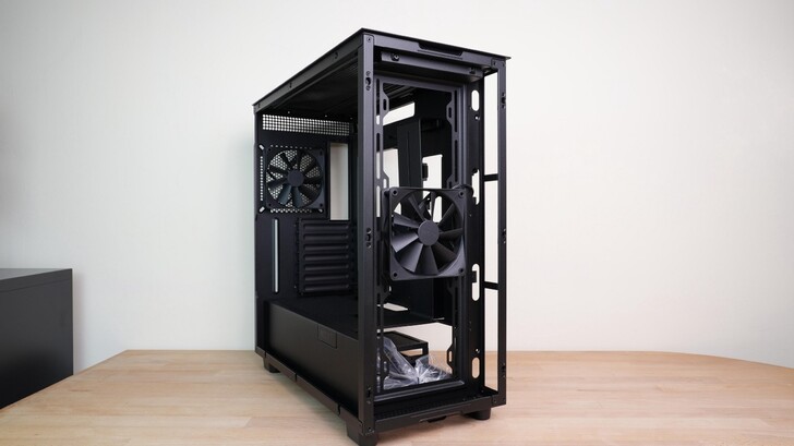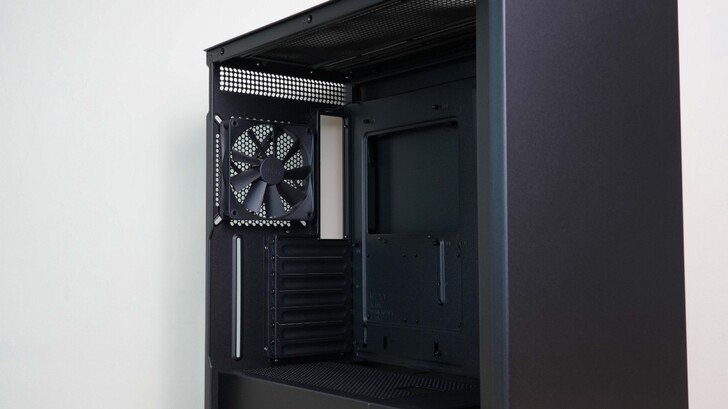 出場時 NZXT 已經預先將兩顆風扇鎖在機殼的前面中間和後面,前面風扇會將風往機殼內吹,後方風扇則是由機殼內往外吹。機殼前方三個風扇位置最大都支援到 140mm 風扇。而機殼上方則僅支援 3 個 120mm 或是 2 個 140mm,後方則是只能 1 個 120mm 或是 140mm 風扇。