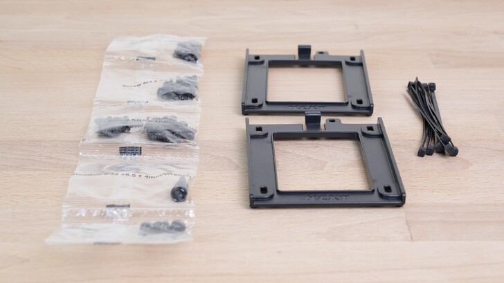 機殼本身預先安裝好了兩個 2.5 吋硬碟支架,包含剛剛配件盒裡的兩個支架,這個 H7 機殼一共可以裝 4 個 2.5 吋硬碟。