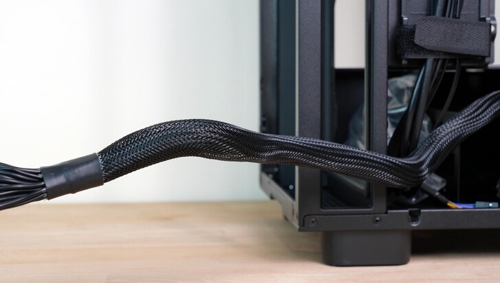 電源線外觀採用編織網設計,它是那種外面額外一層編織網的那種。整體線材軟硬度中規中矩,不算特別軟。如果是那種整線強迫症,有打算彎一些特別神奇、特別彆拗的角度,可能要自行評估一下。