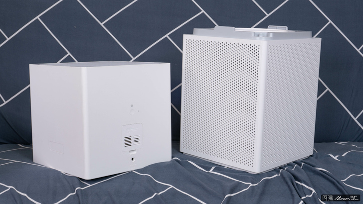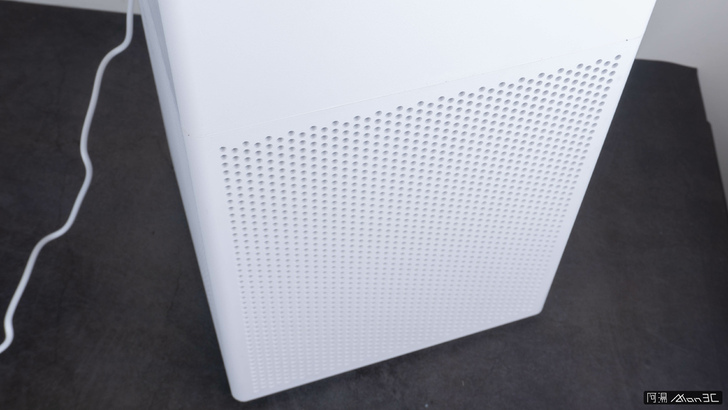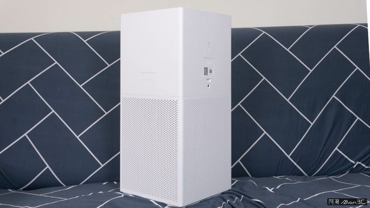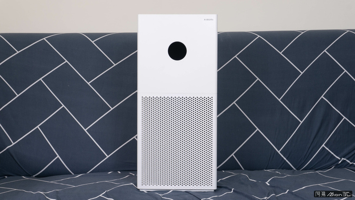 小米第四代空氣清淨機的設計語言都相同,方形柱狀的機身,上方有個圓形的螢幕,底部有著網孔作為進風口。