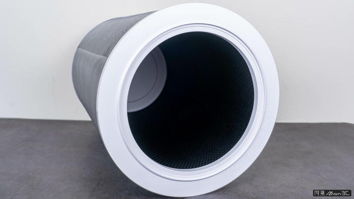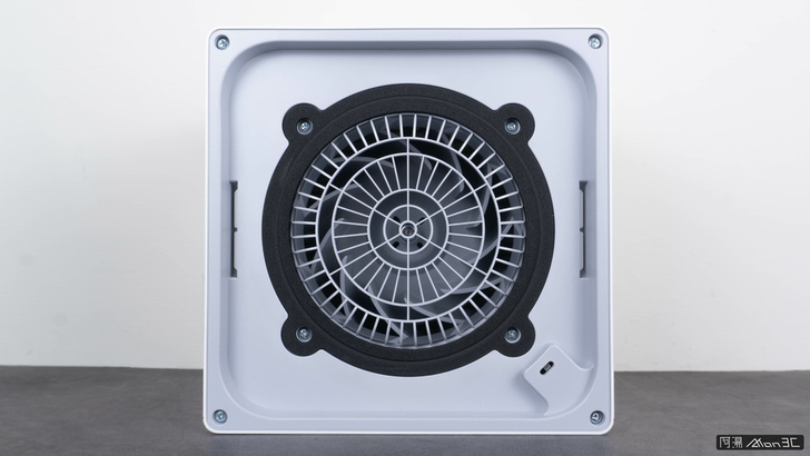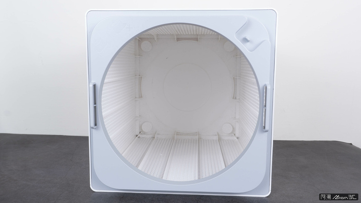 上半部的風扇可見特殊的葉片設計,與一般風扇不同,畢竟空氣清淨機可不只追求風量,足夠大的風壓才能讓空氣有足夠的速度穿過濾網,以達到過濾空氣的目的。