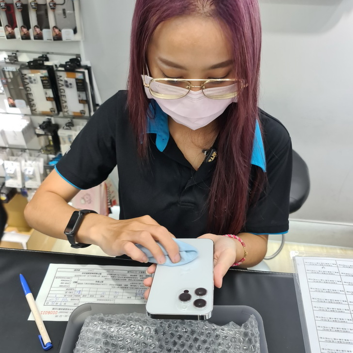 ▼ 小豪包膜的門市人員,會先超級仔細的檢查,先確定手機的外觀狀況及序號。(僅收手機、不收外盒。)
