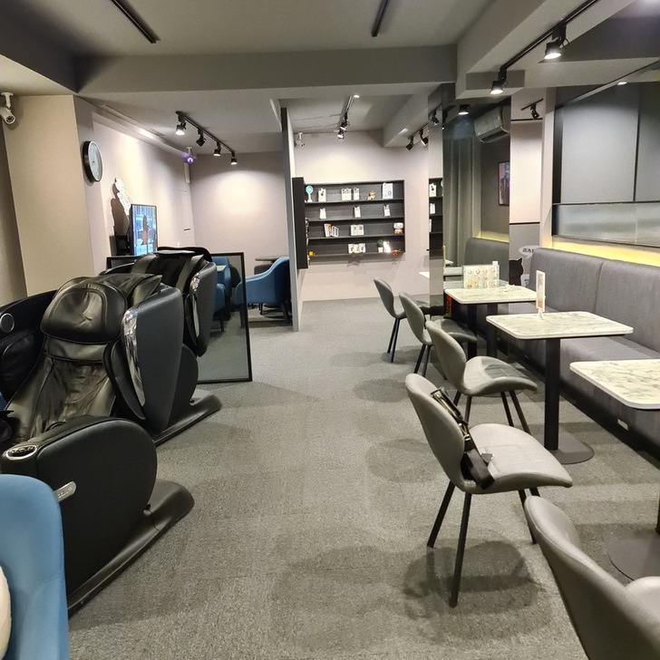 ▼ 小豪包膜 - 板橋旗艦店 二樓休息室,除了有 按摩椅,還有 飲料及小餅乾 享用,讓顧客等待手機時可以好好休息。