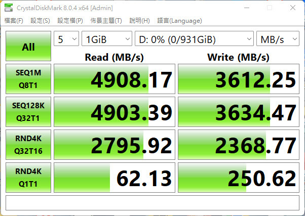 CDI 8.04 讀取4908MB / 寫入3612MB 與官方標稱基本一致