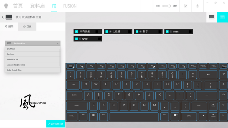 將機身上可發光區域,如鍵盤、電源按鍵、機身LED燈條做調整。