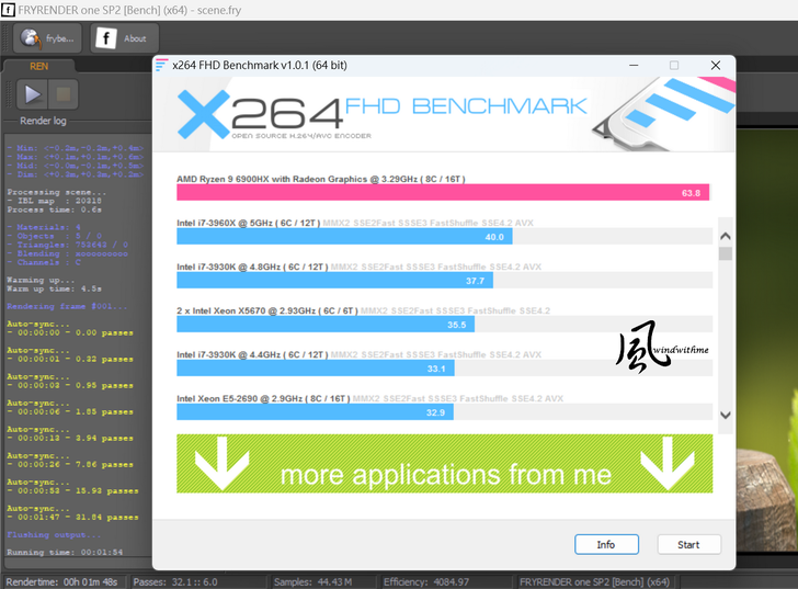 x264 Benchmark 1.0.1 => 63.8FPS,