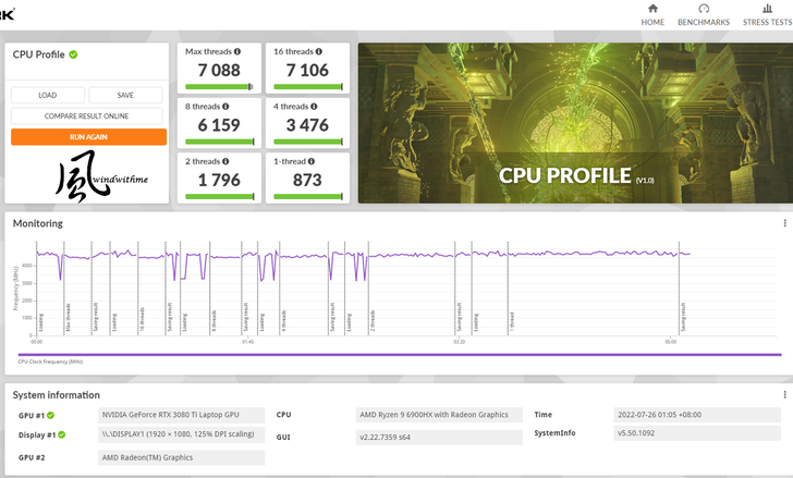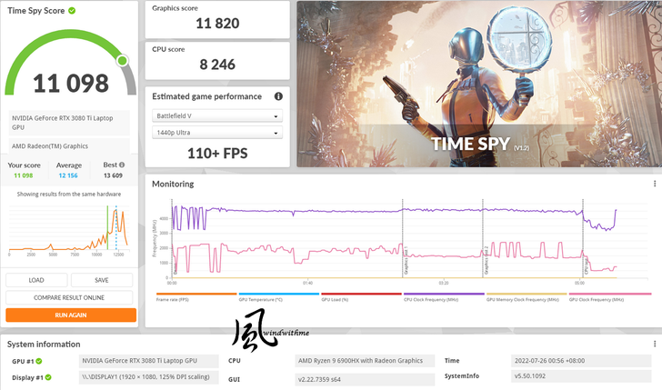 有關筆電3D效能表現,搭載3080Ti應已經是最高等級,隨著CPU不同也會有些微落差,先前已經有分享過其他款電競筆電搭載RTX 3060、3070Ti、3080等不同的顯卡,對於3D表現有興趣的網友,可以搜尋windwithme先前的筆電評測文章,AMD 6000系列內顯搭配新一代Radeon 680M,網路上資訊是有明顯3D效能提升,不過已經內建中高階顯卡的筆電來說,3D應用範圍應該不高,若是輕薄或較入門定位的筆電,AMD新一代內顯確實更為吸引人的要素,礙於篇幅此處不多做測試。