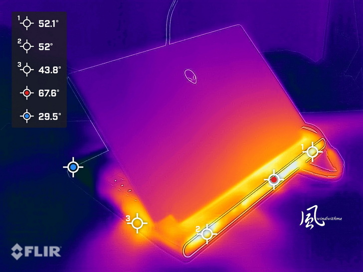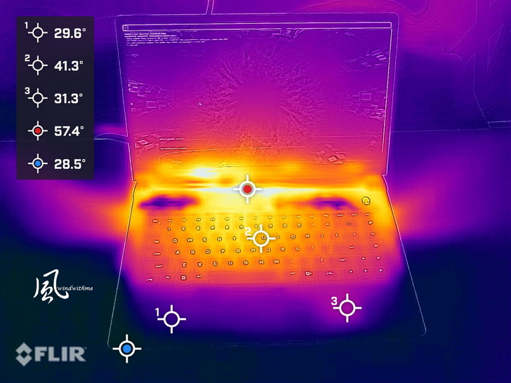 機身溫度表現,GPU搭配FurMark燒機測試時C面外殼溫度: