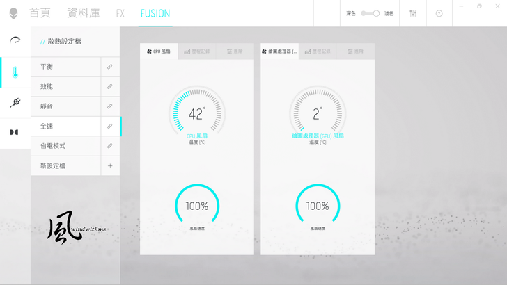 散熱模式共有5種,平衡、效能、靜音、全速、省電模式。