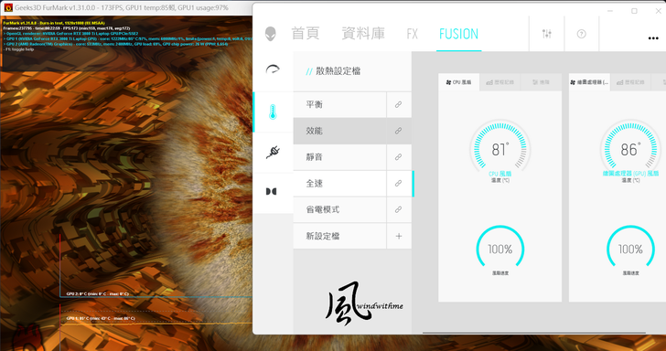 FurMark主要為GPU RTX 3080Ti Laptop燒機測試: