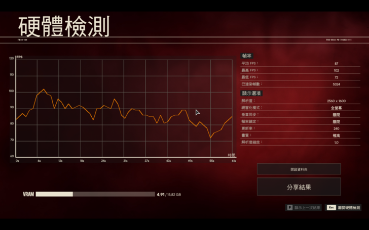 關閉光追後,平均幀率來到了 65.1 幀。老實說這成績對我個人而言是有些失望的。